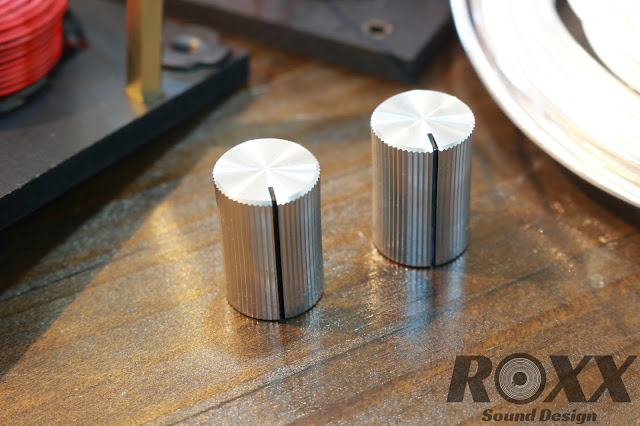 JBL純正のアッテネーターノブは樹脂製でもろく全面バッフルよりも奥まった位置にあり操作性に欠けます。本機に搭載したアルミ削り出しノブは大変丈夫で美しく全面バッフルより全面に出ている為、操作性の向上に貢献しています。
